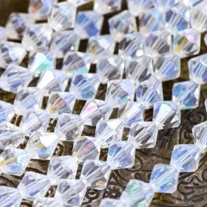 бусина, стекло биконус 8, цвет прозрачный/радужный, 8 мм