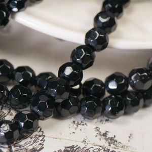 бусина, стекло 8, граненая, цвет черный, 8 мм