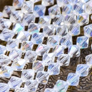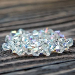 бусина, стекло биконус, цвет прозрачный радужный, 5-6 мм