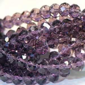 бусина, стекло абакус 8, граненая, цвет фиолетовый, 8х6 мм