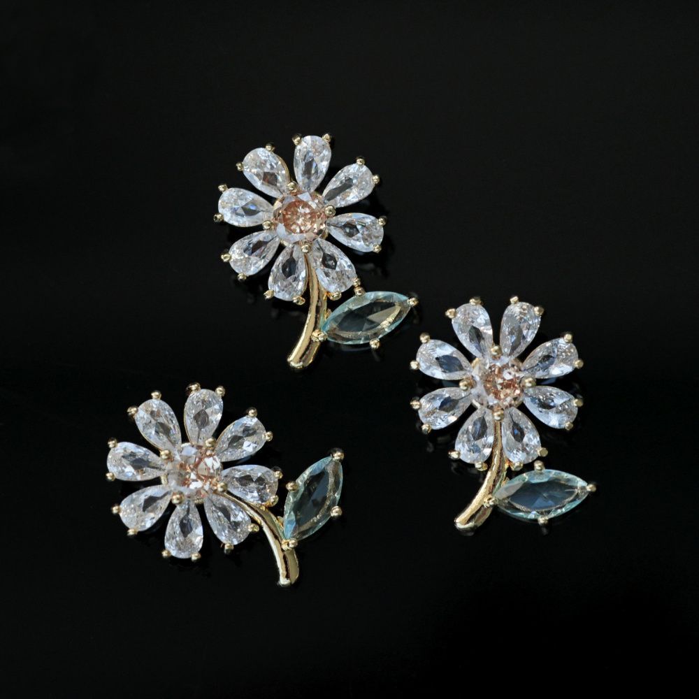 Подвеска металл "Маргаритка", цирконий/позолота, 19.5x18x7.5 мм