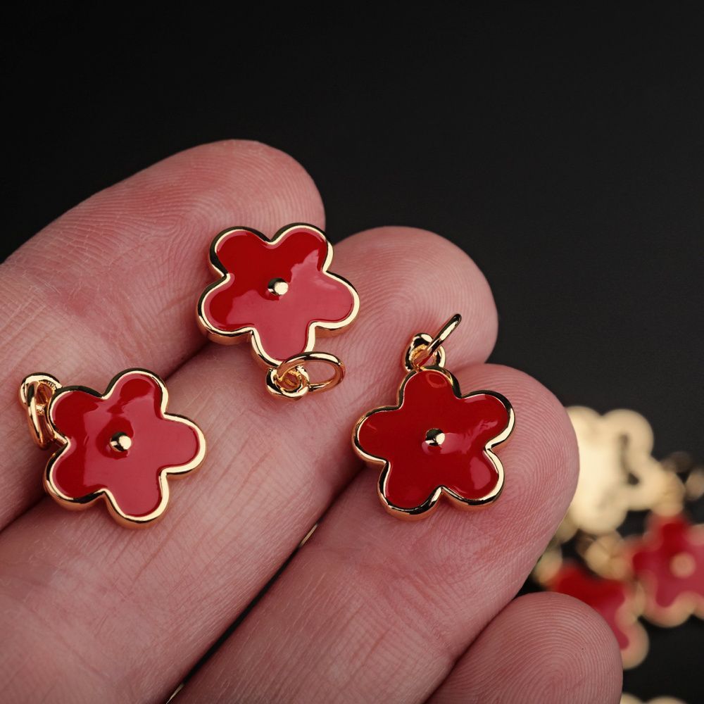 подвеска металл "незабудка", позолота/красный, 14.5x12x1.3 мм