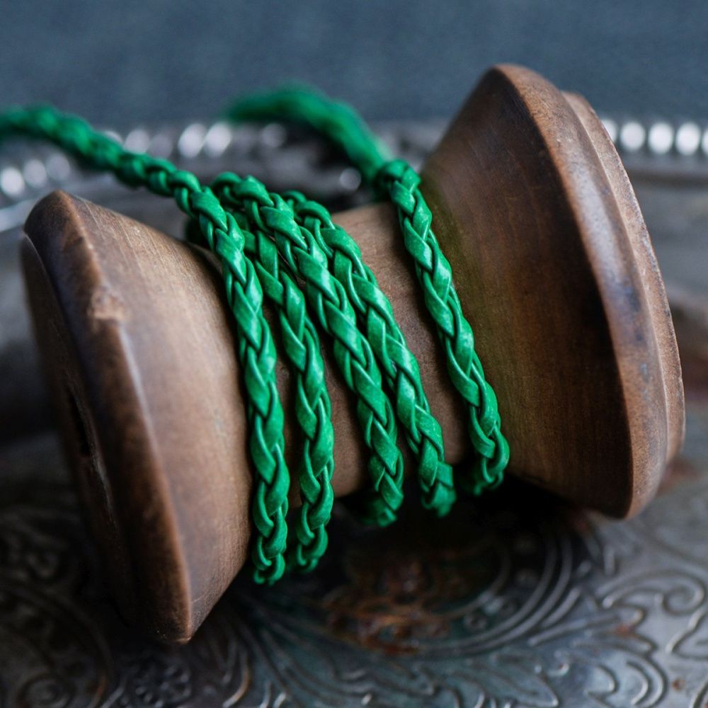 Шнур плетеный, выполненный из искусственной кожи, цвет зеленый.