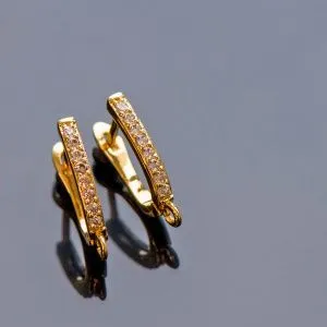 швензы "адель", с цирконием, позолоченные, 19x12.5x2 мм