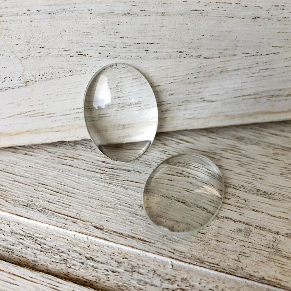 Кабошон стеклянный, овальный, прозрачный, 35х25х6 мм