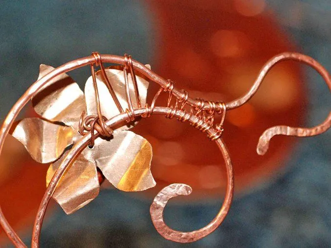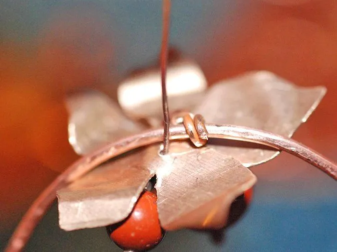 9. Круглогубцами и плоскогубцами изгибаю лепестки и листики. Добавляю элементы из согнутой и частично отбитой проволоки (1,5мм), кончики обрабатываю напильниками