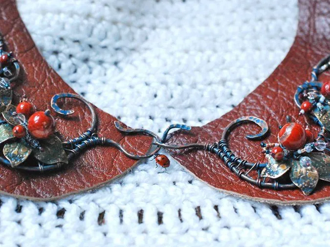 Сегодня у нас на вкусненькое мастер-класс по изготовлению воротничка из кожи с медным декором.