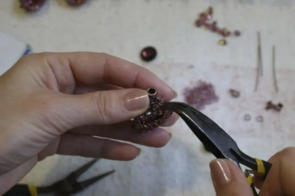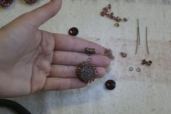 29. На швензы нанизываем по 6 бисеринок, при желании их можно подклеить. Присоединяем швензы к петельке на наших кабошонах.