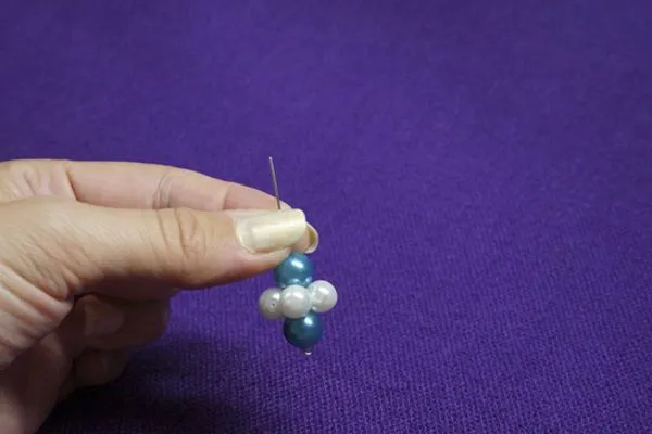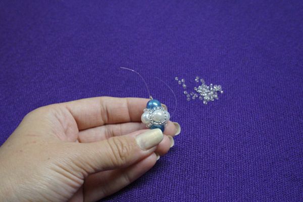 5. На заготовленный штифт нанизываем большую бусину, затем нашу созданную конструкцию, и еще раз одну большую бусину.