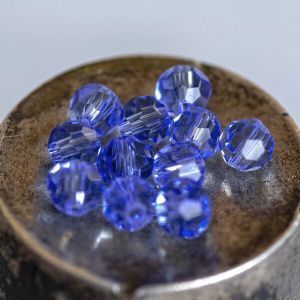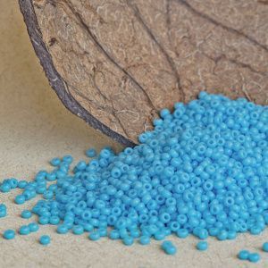 14. Продолжаем плести цепочку: теперь проходя через набранную голубую бисерину, набираем еще 4 белых, получится что-то вроде восьмерки: