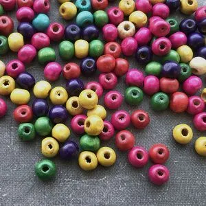 4. Чередуйте бусины, закрепляя их между полосок шнура с помощью нити.