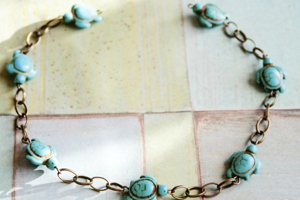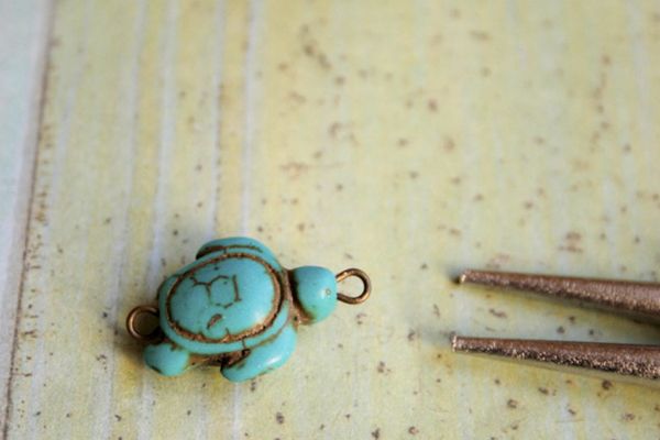 6. Для этого можно разжать либо звено цепи, либо петельку, а потом зажать. Берем следующую черепаху и пин, и снова подрезаем пин, делаем колечки и присоединяем её к цепи. Обратите внимание, что все черепахи идут в одном направлении