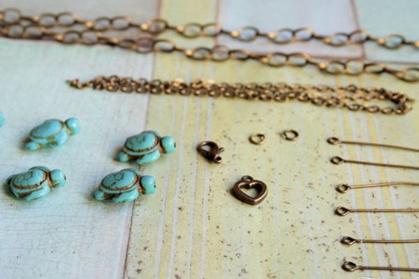5. Обратите внимание, что при работе с цепями с крупными звеньями, звенья расцепляем с помощью круглогубцев! Присоединяем отрезок цепи к черепахе (петельке)