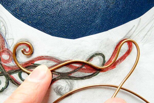 5. От завитка крутим проволоку дальше, сверяясь с эскизом.