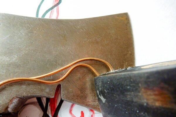 6. Основу изделия обычно отбивают молоточком. Если нет наковальни, вместо нее сгодится топор.