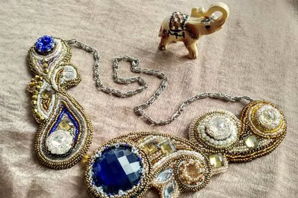 14. После того как были соединены два части изделия, лучше его примерить: приложить на платье или на шею, чтобы понять где лучше расположить цепочку.