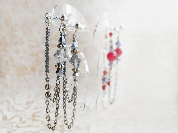 Привет! Я птичка Таня, и сегодня хочу показать еще один вид сережек, выполненных в похожей технике. Длинные серьги с цепочкой и сверкающими биконусами.